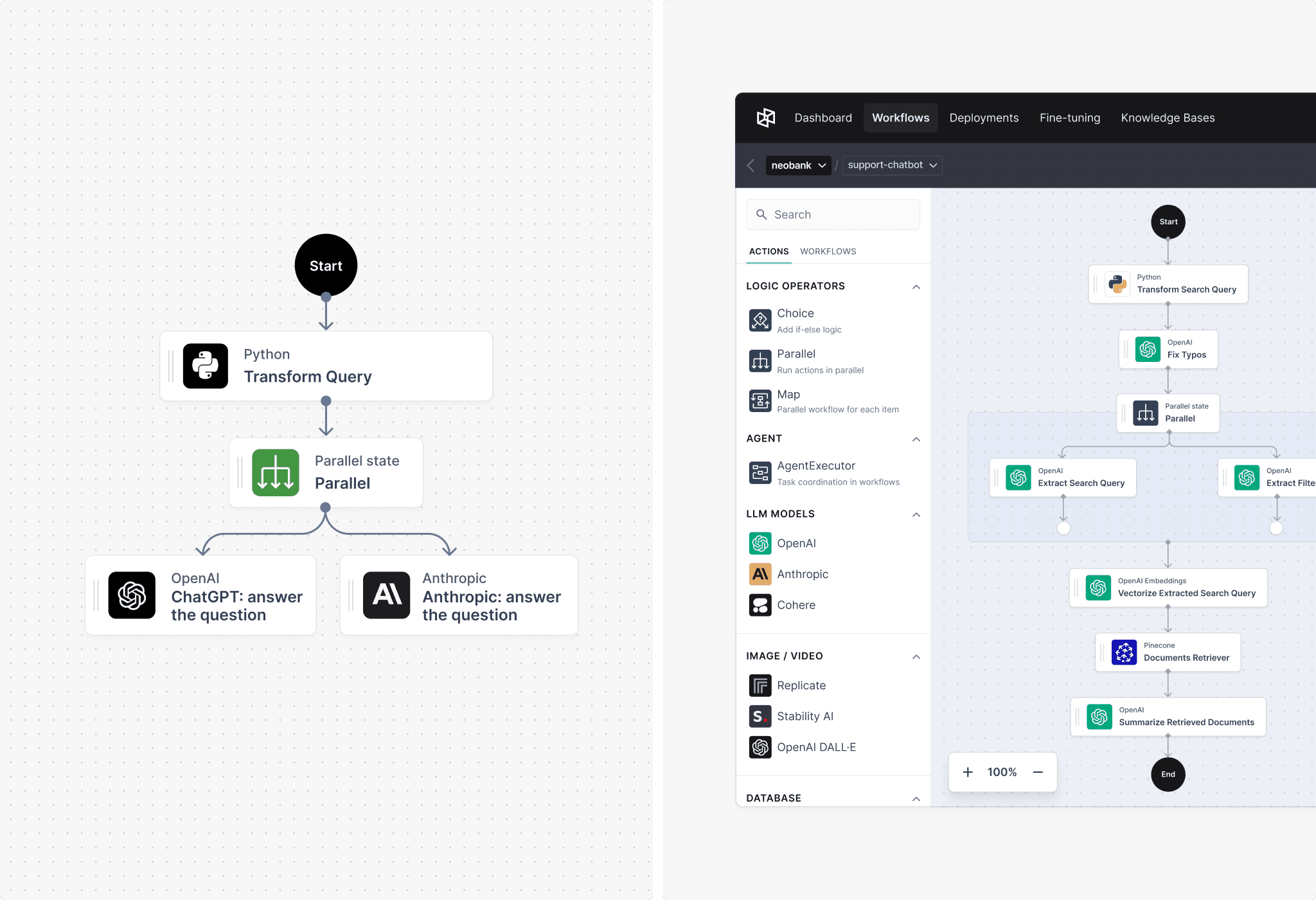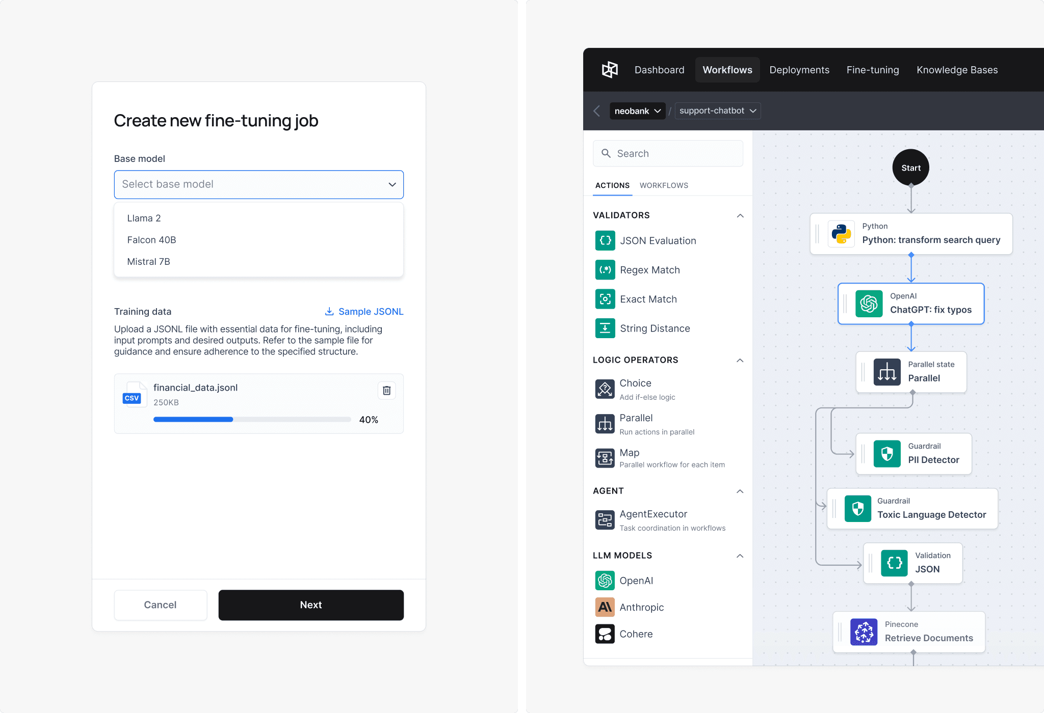 Challenge: Design an intuitive interface for a complex enterprise AI platform—making AI integration accessible without sacrificing power, flexibility, or compliance across regulated industries.