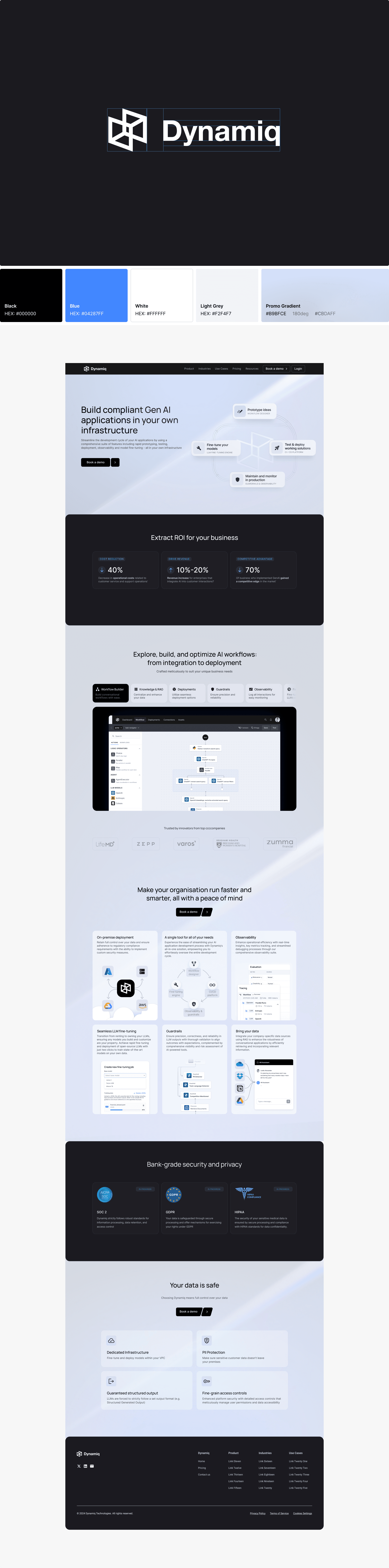 Beyond the core product UI/UX, branding and website design were developed to reflect DYNAMIQ’s innovative and technical positioning. A clean, minimalist visual style was used to reinforce clarity and professionalism. The website emphasizes simplicity and functionality, helping visitors quickly understand the platform’s capabilities while remaining visually engaging.