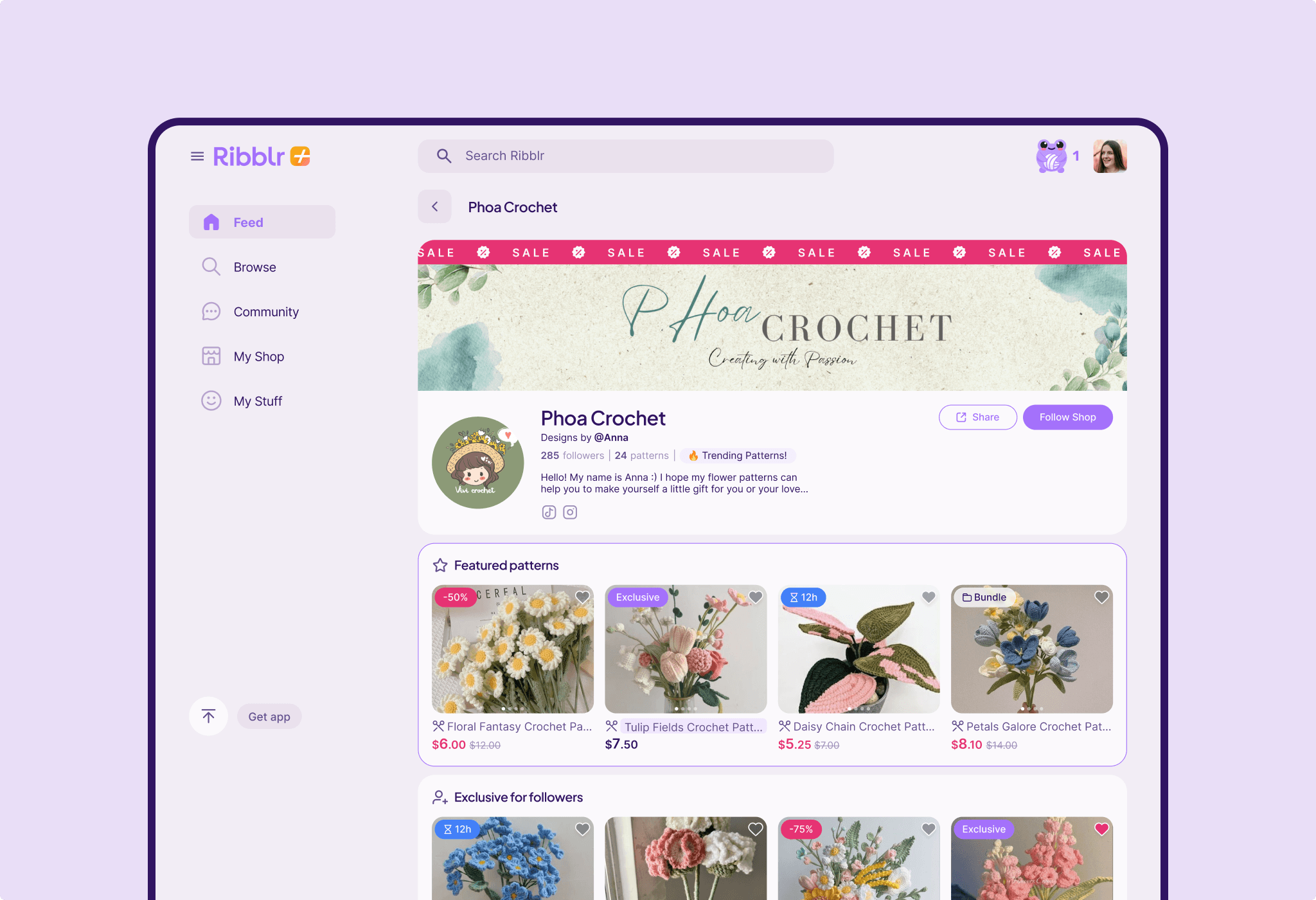 In collaboration with the Ribblr team, a personalized “For You” section was also introduced to surface relevant patterns and content tailored to each user.