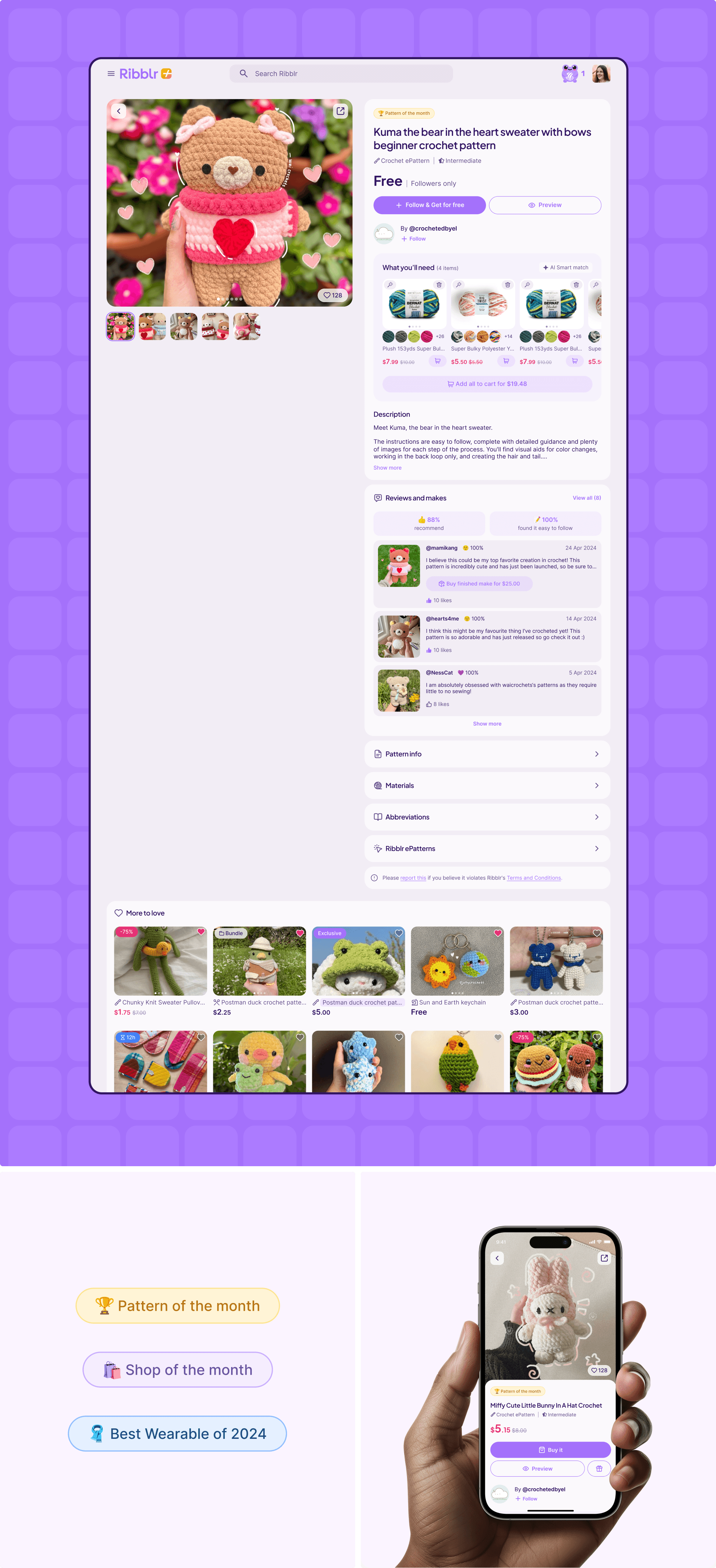 The reviews and makes experience was refined with clearer structure and stronger visual context. Improvements to how users share finished projects and leave feedback help foster a deeper sense of community, inspiration, and connection among crafters.