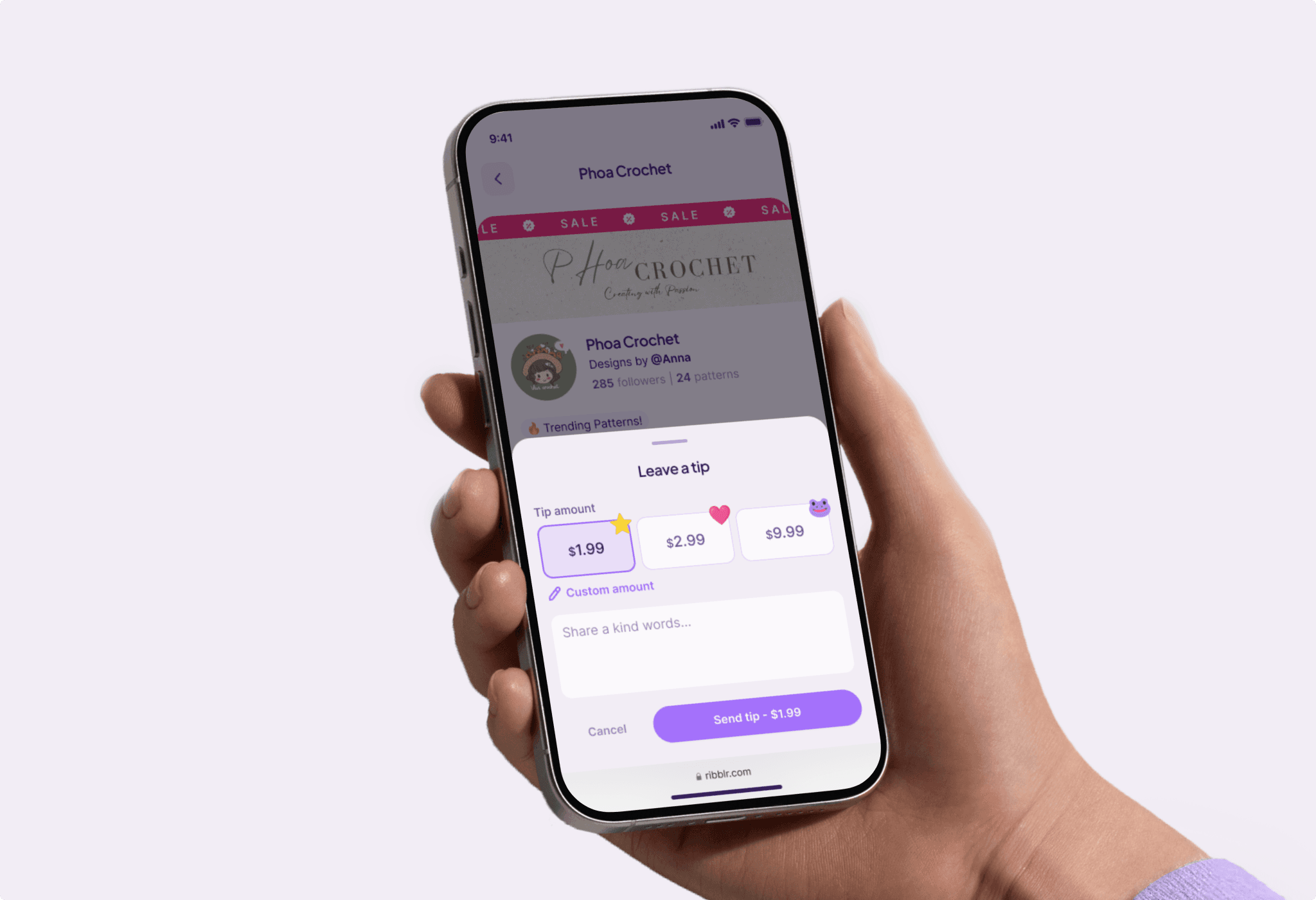 A tipping feature was designed to let users show appreciation for designers - either within shops or at the end of completed interactive instructions. This playful, lightweight interaction strengthens community connections and introduces new ways for users to support creators.